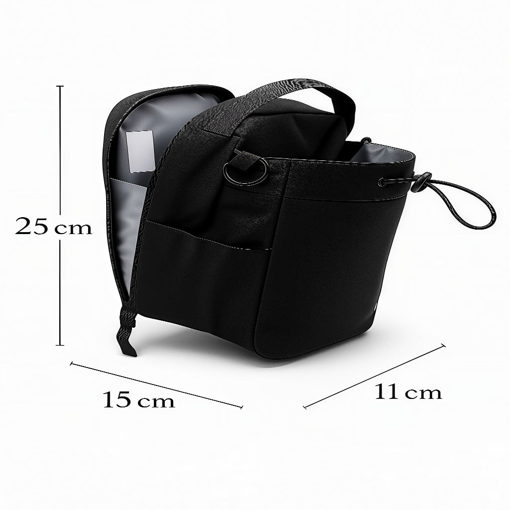 Téléphone, clés, porte-carte et gourde jusqu’à 1,5 L. Organisation pensée pour un accès rapide.